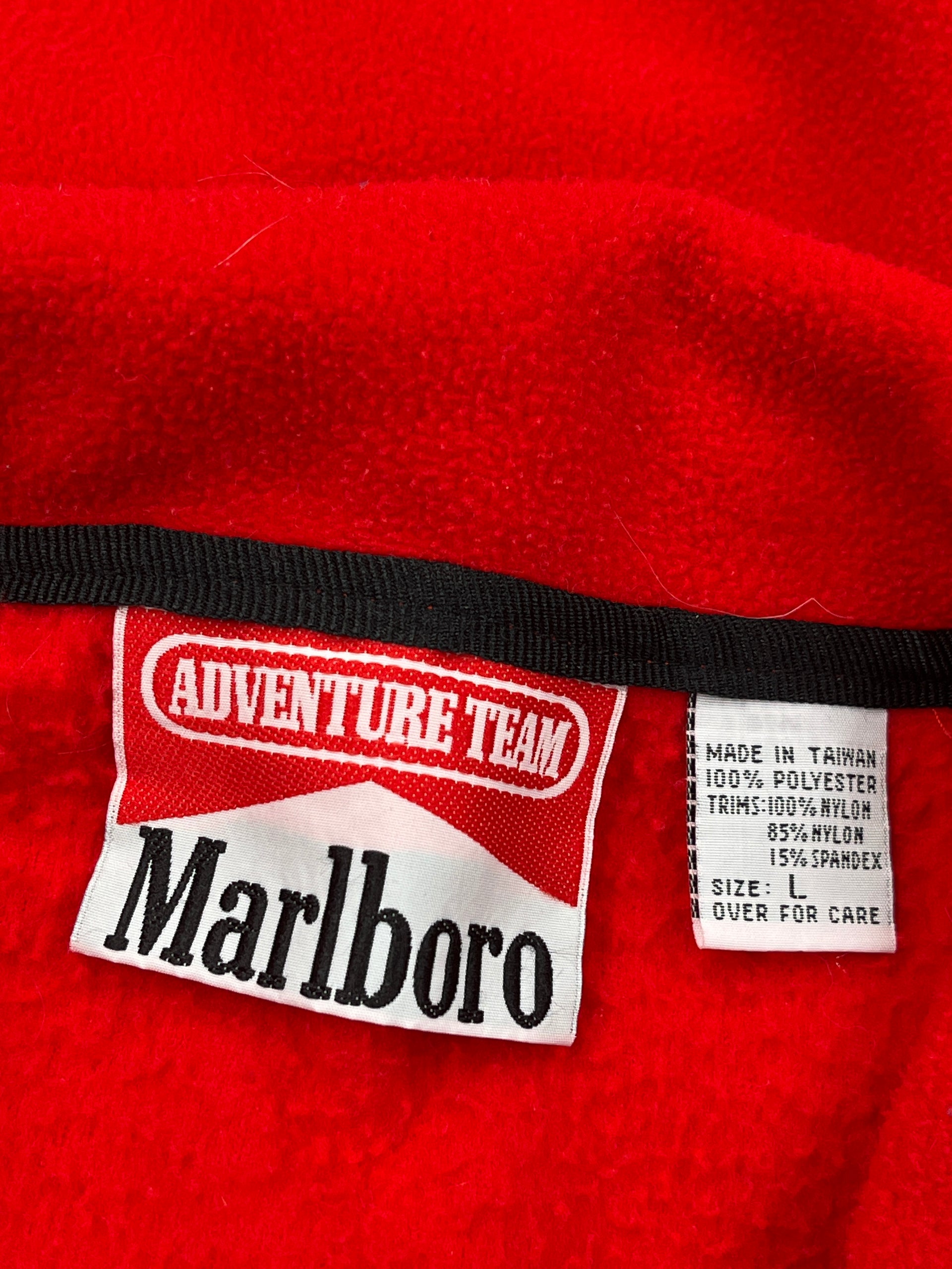 This is a vintage 90s Marlboro Adventure Team red fleece pullover jacket.