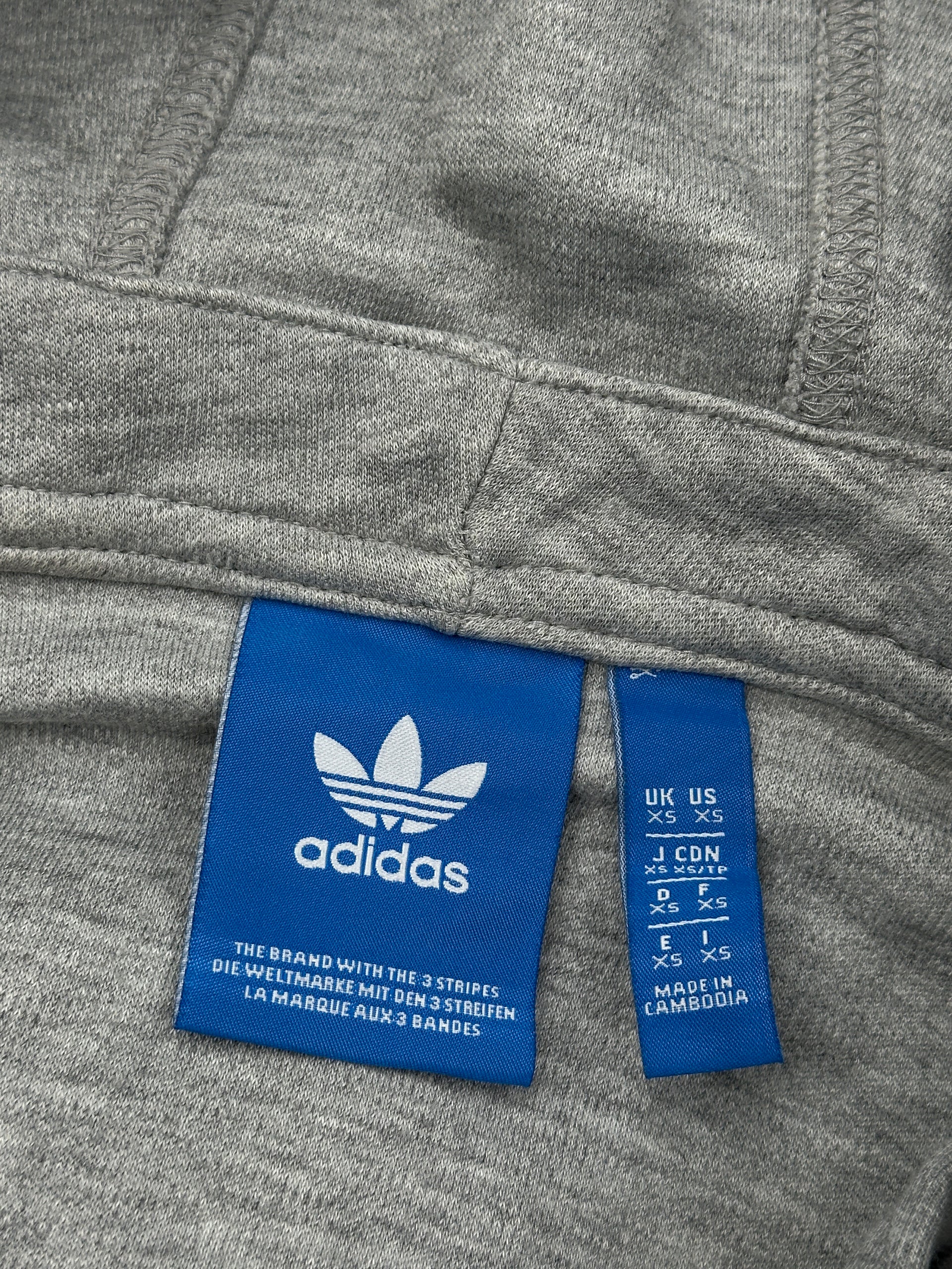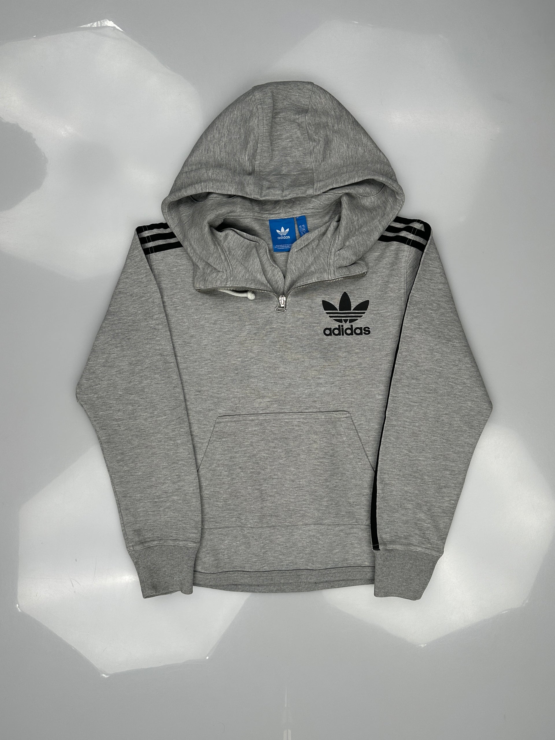 This is an Adidas Adicolor Terry 1/4 Zip Grey Hoodie.