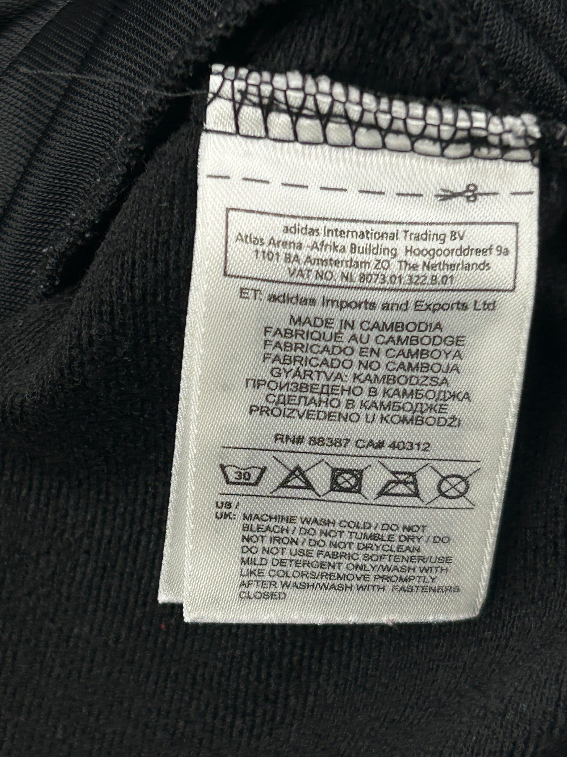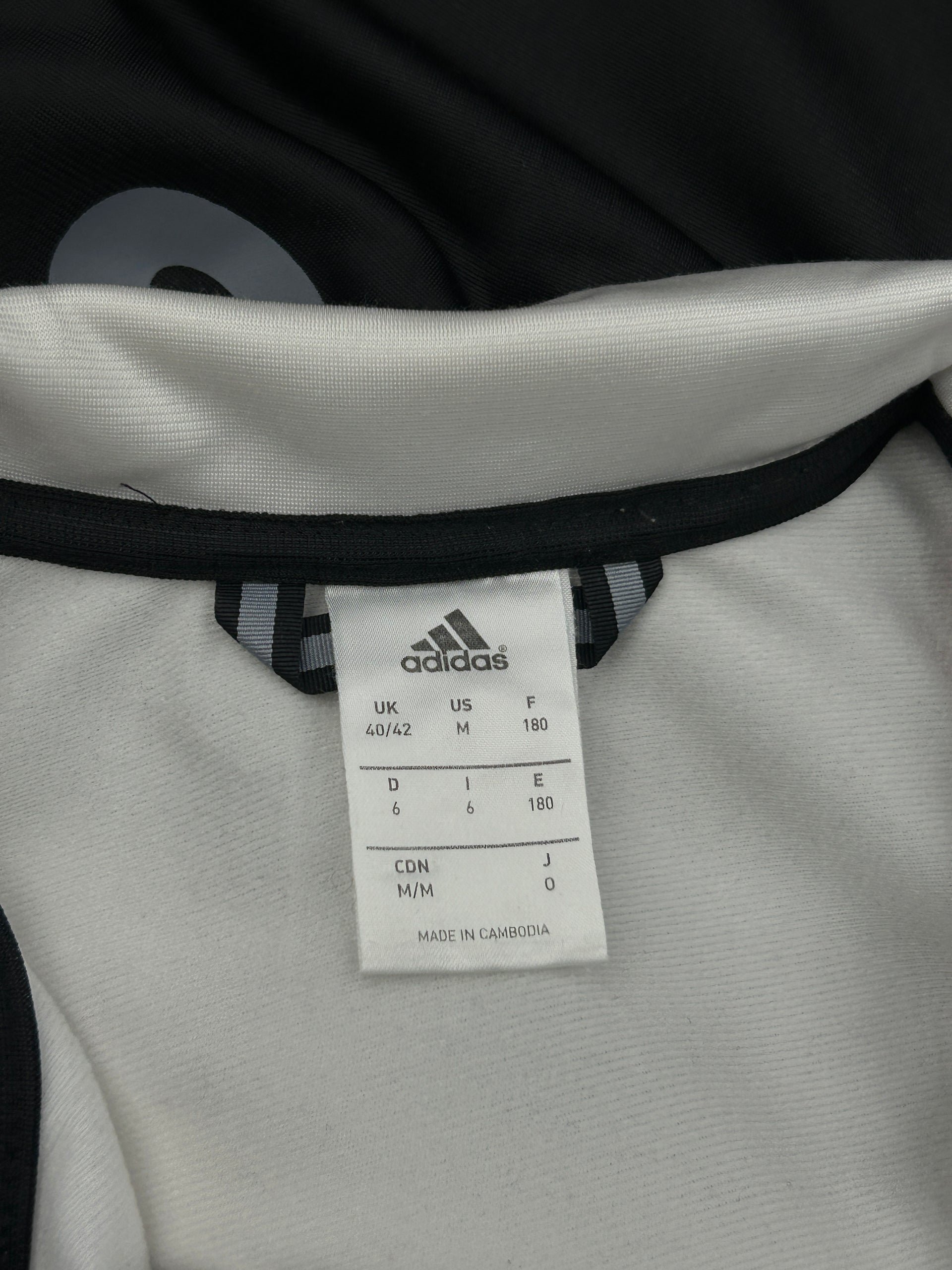 This is a vintage Adidas tracksuit jacket in black, white, gray, and red.