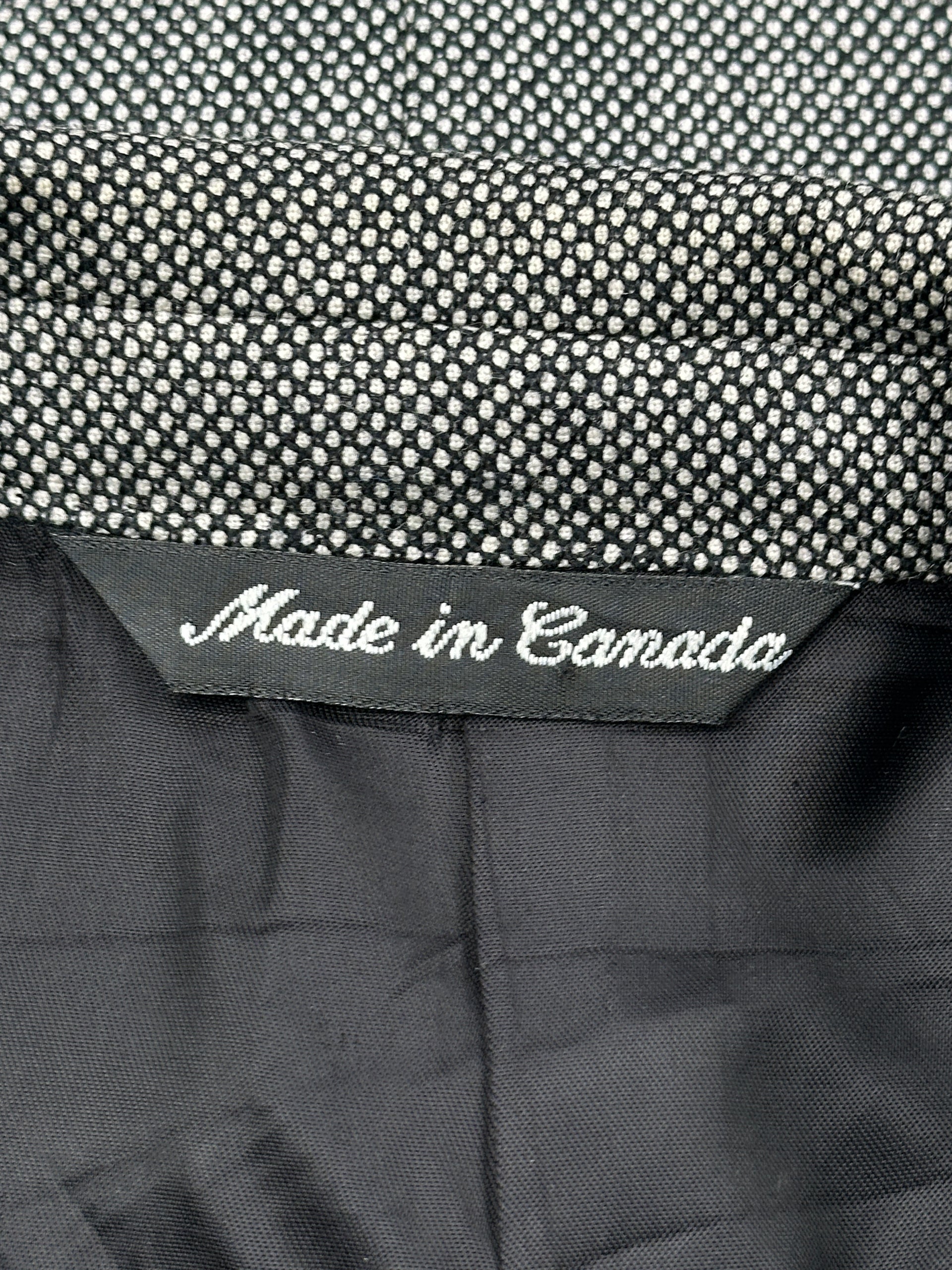 This is a grey Aquascutum blazer in a wool or wool blend material with a glen plaid Pattern