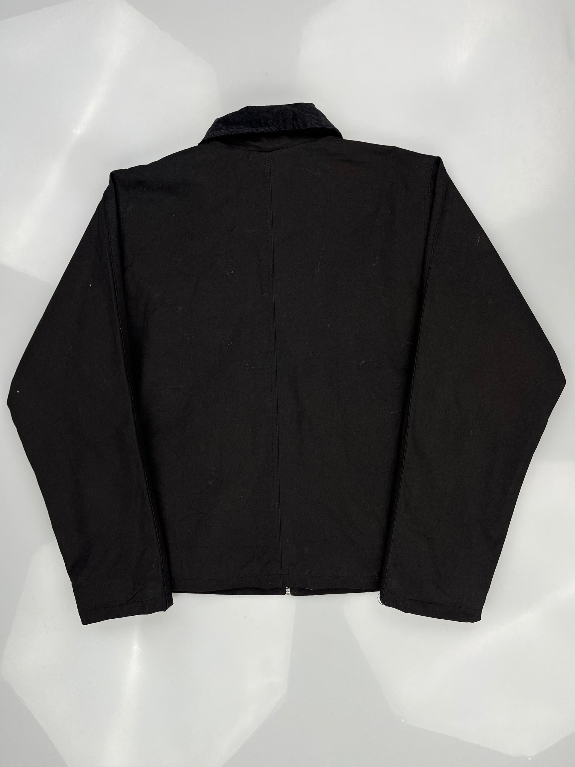 This is a black Carhartt or Carhartt WIP Detroit jacket with a corduroy collar.