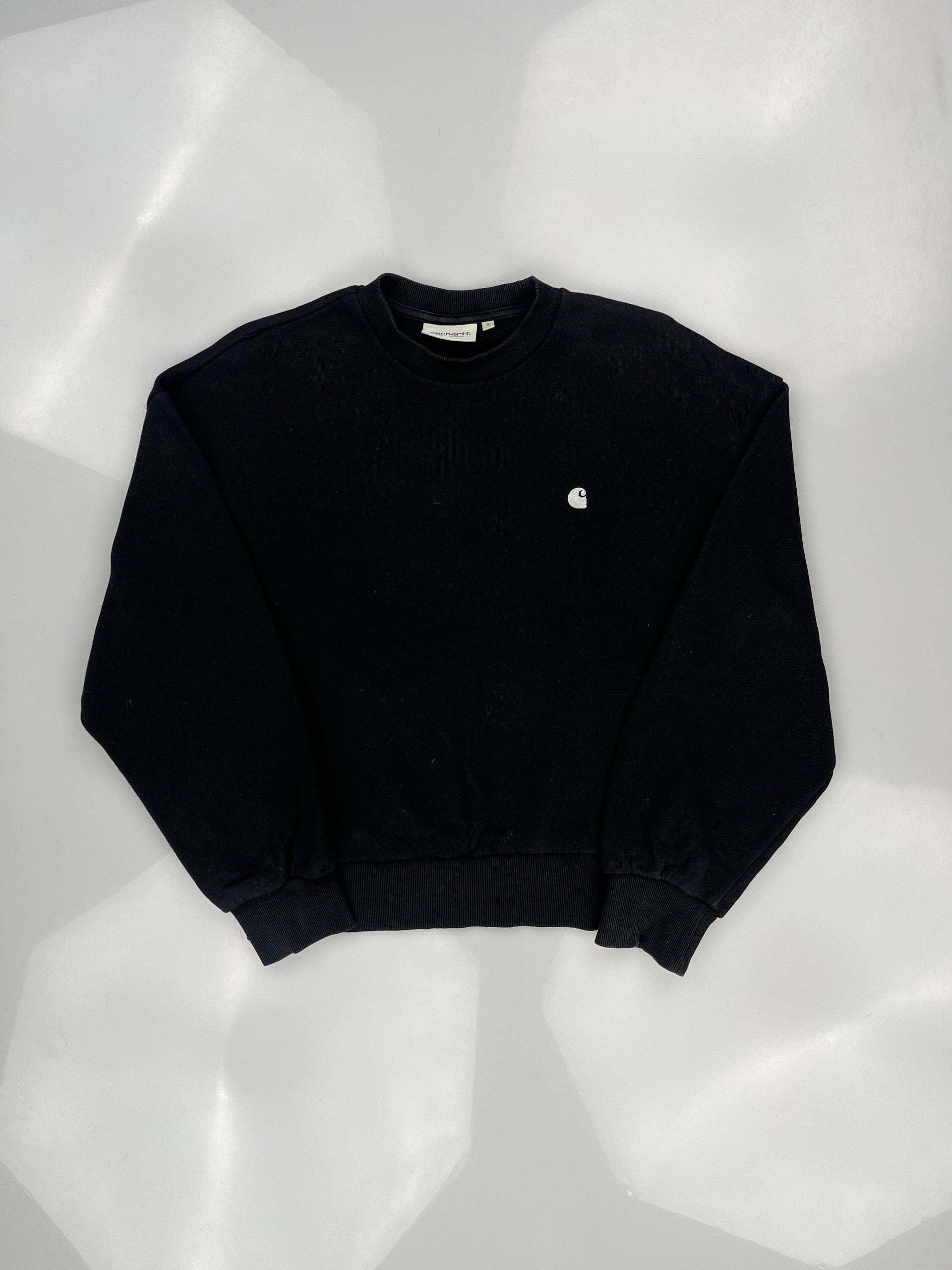 This is a Carhartt WIP Women's Casey Sweatshirt in black cotton with a silver "C" logo