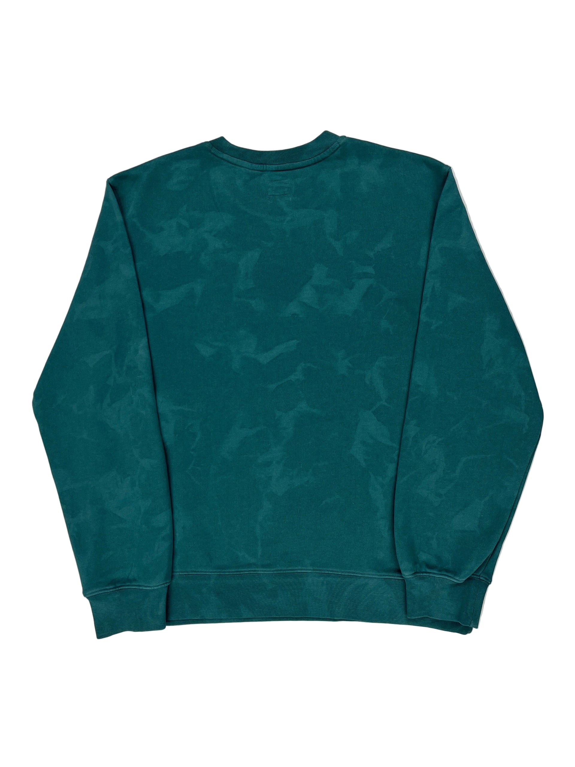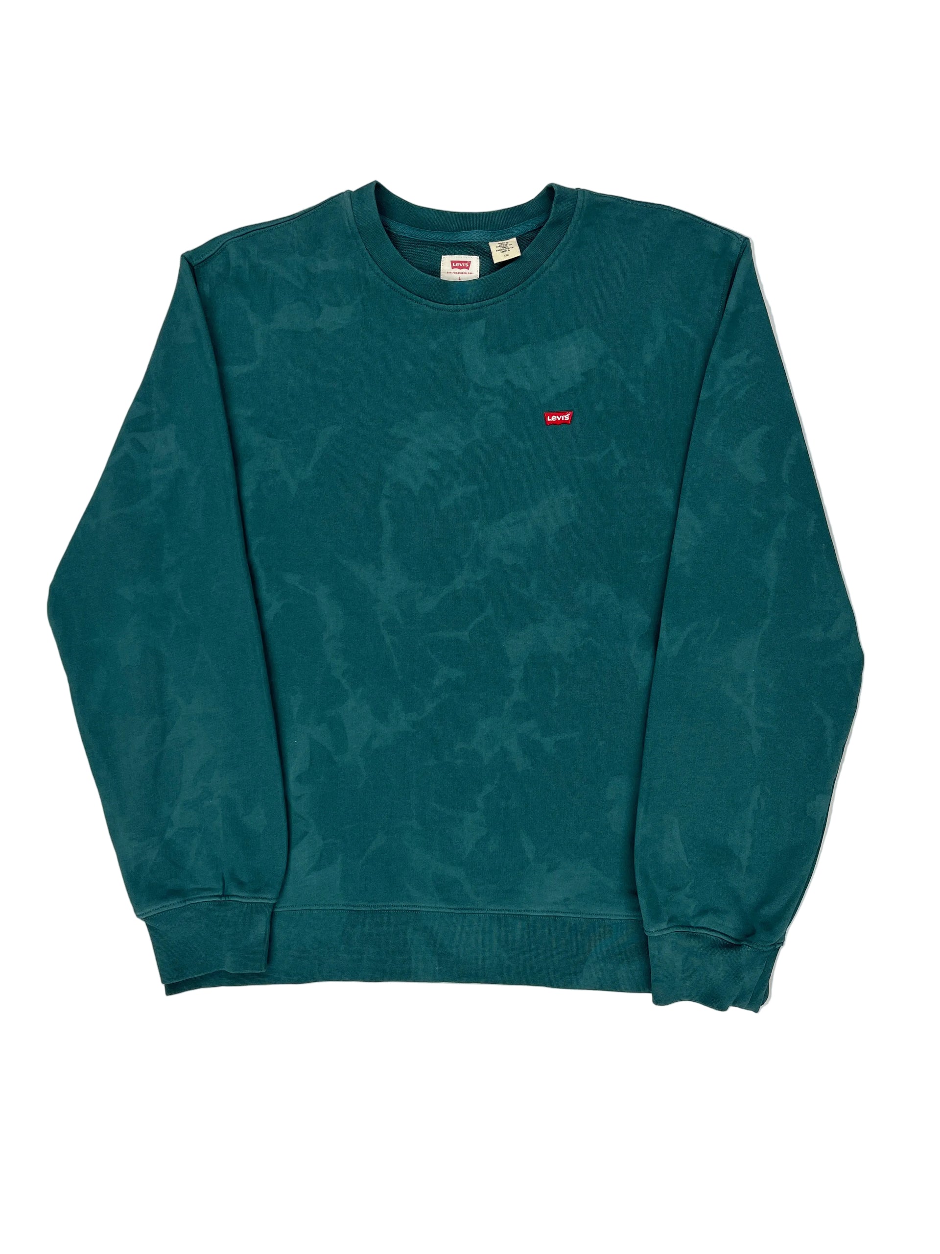 This is a Levi's Original Housemark Crewneck Sweatshirt in a green tie-dye or 'Solar Dye Atlantic Deep' color and a standard fit.