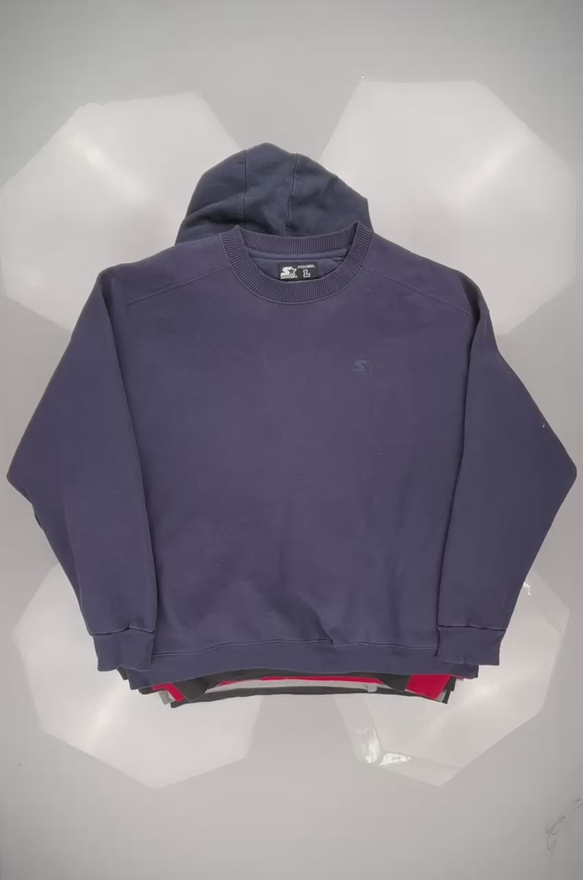 A collection of Starter, NFL, and Reebok pro sports sweatshirts, great for vintage and sportswear resellers. Each sweatshirt maintains its authentic branding and appeal for fans.