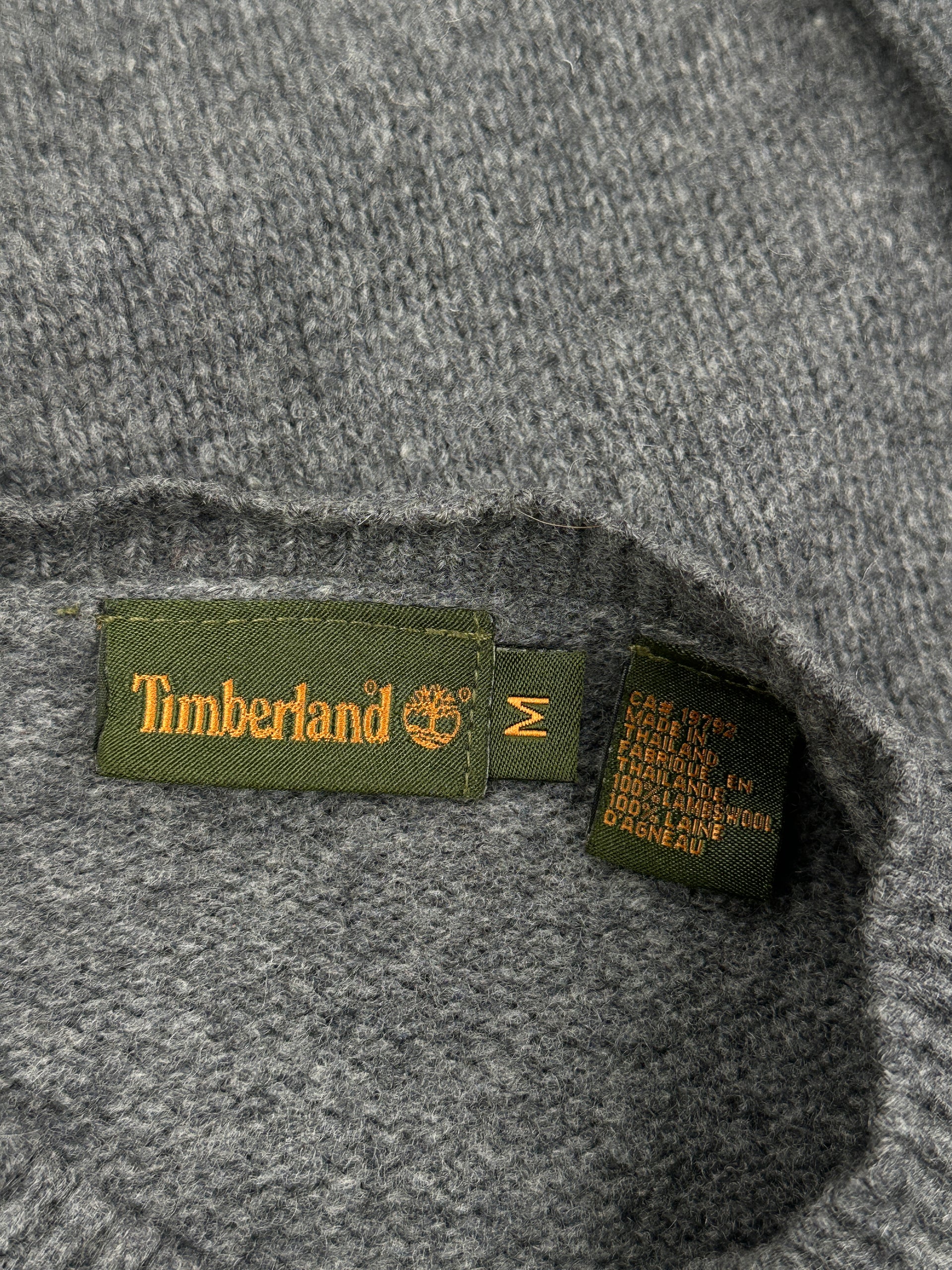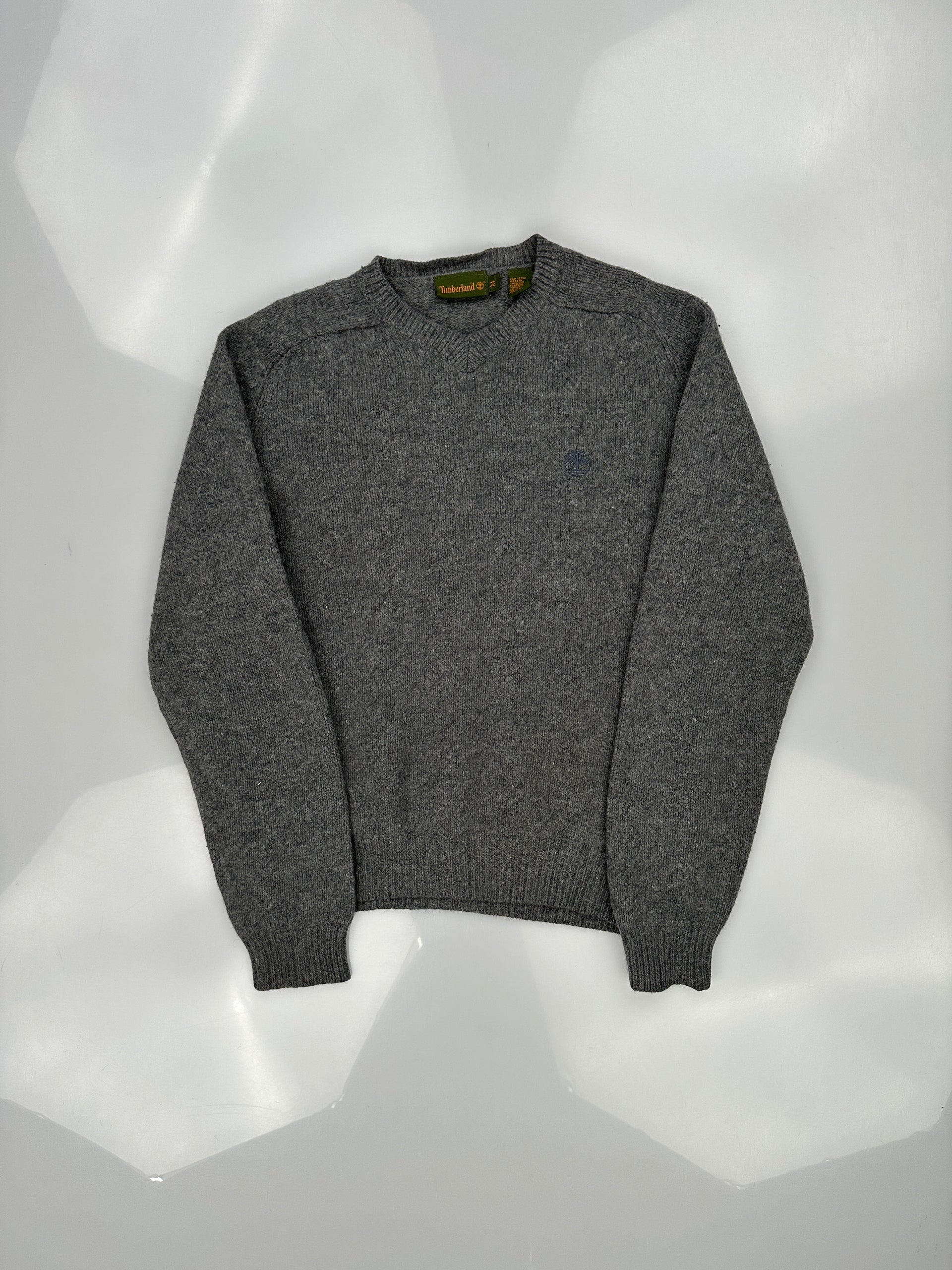 This is a Timberland crewneck sweater in grey wool