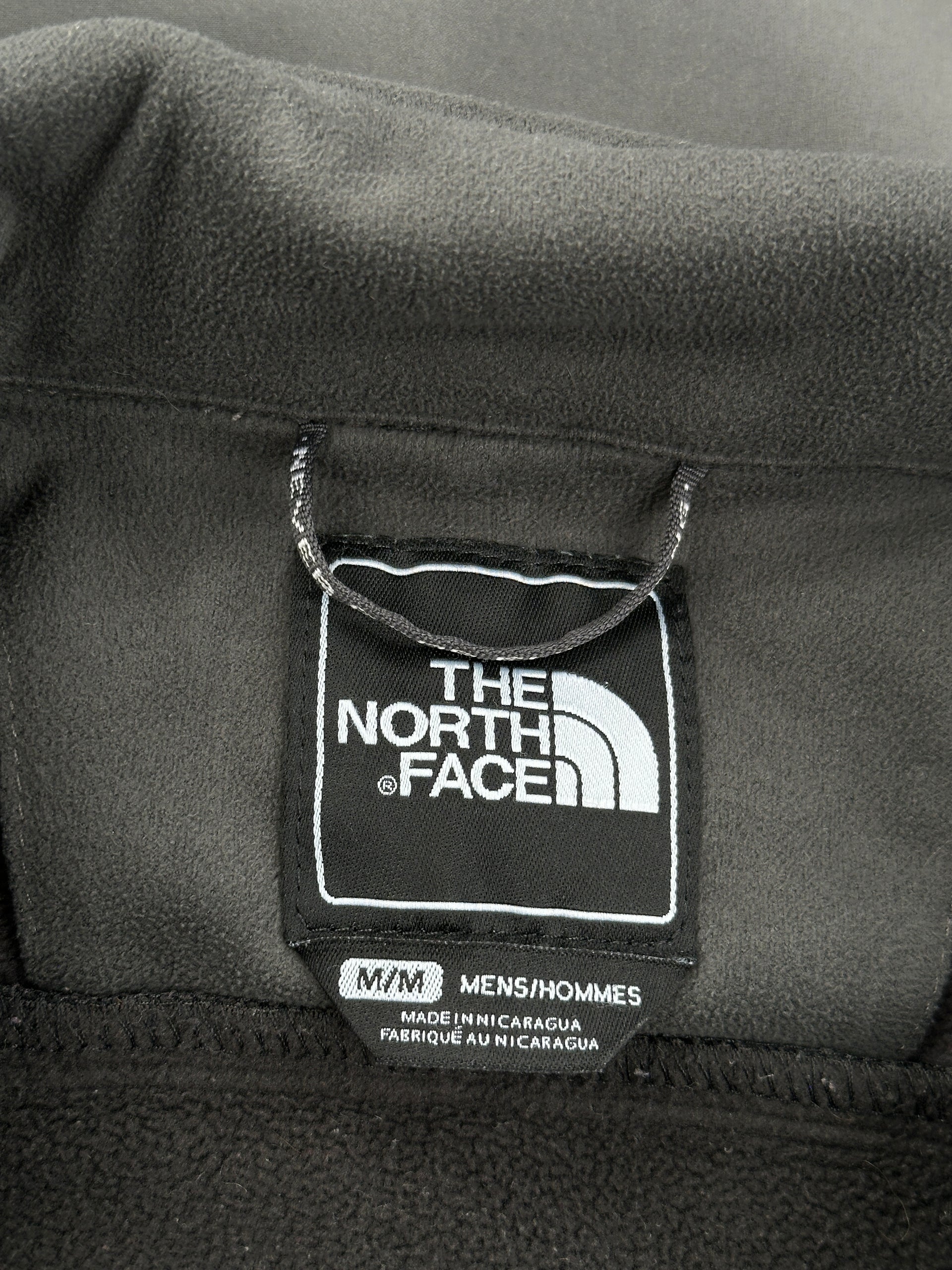 This is a The North Face Fleece jacket in a two-tone grey and black colorway.